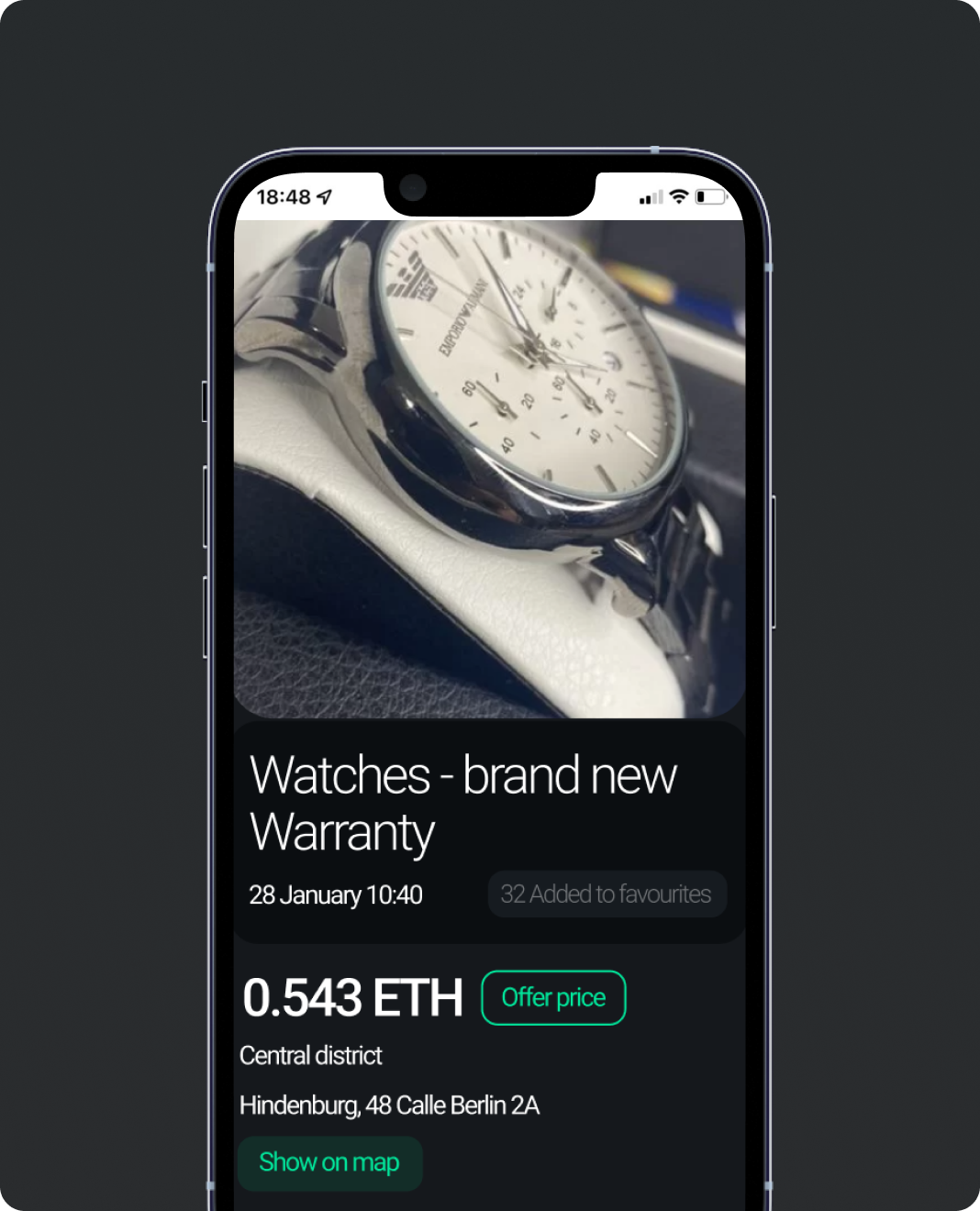 A user-friendly interface with various interactions was developed, such as: the approximate cost of the lot in dollars, a lot of characteristics of the lot, the ability to purchase any goods, from furniture to NFT.